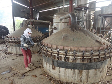 Use Cassia leaves as fuel to heat the pot of distillation |
